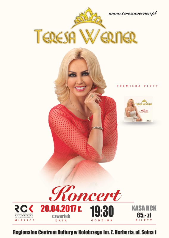 Zapraszamy do RCK dnia 20 kwietnia 2017 roku o godz. 19.30 na koncert Teresy Werner.