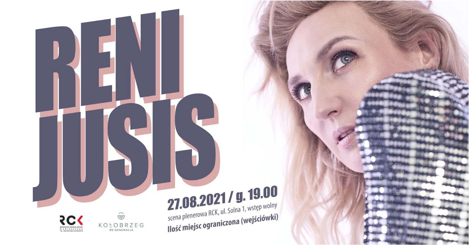 Zapraszamy 27.08.2021 r. o godzinie 19.00 do Regionalnego Centrum Kultury w Kołobrzegu im. Z. Herberta na koncert Reni Jusis. Scena plenerowa RCK.