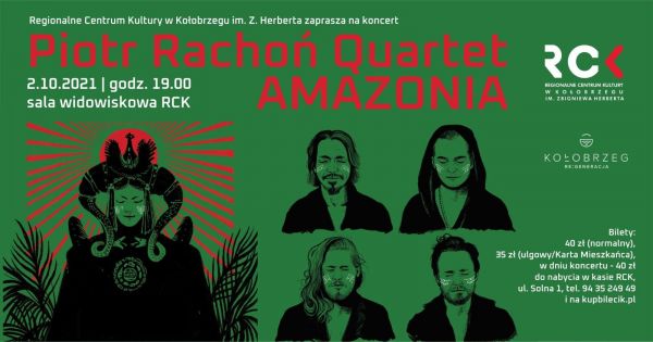 Zapraszamy dnia 2 października o godzinie 19.00 na koncert Piotra Rachonia Quartera „AMAZONIA”, który odbędzie się w sali widowiskowej w RCK.
