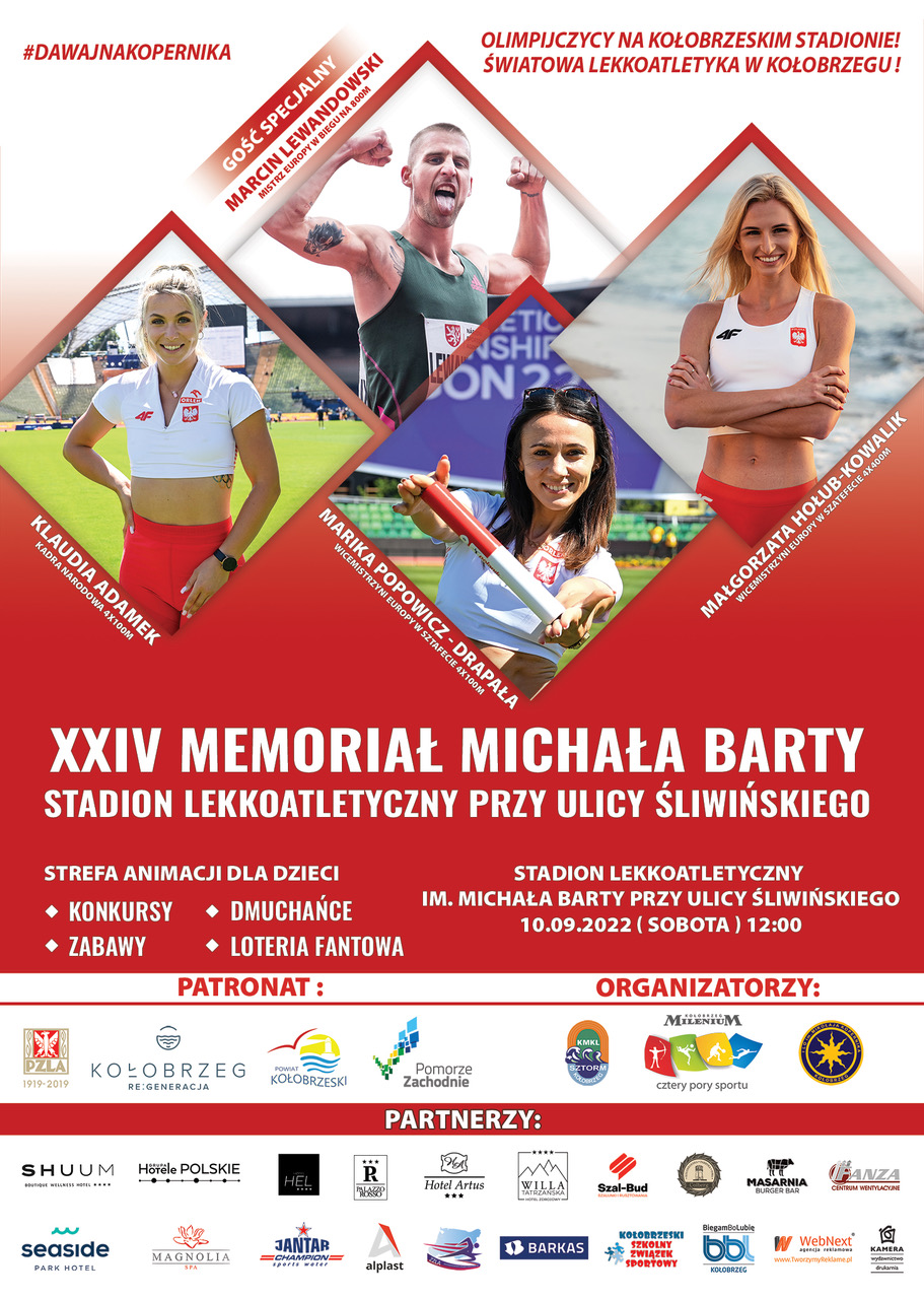 Zapraszamy 10 września 2022 roku o godzinie 12.00 na Memoriał im. Michała Barty! Światowa lekkoatletyka na kołobrzeskim stadionie!