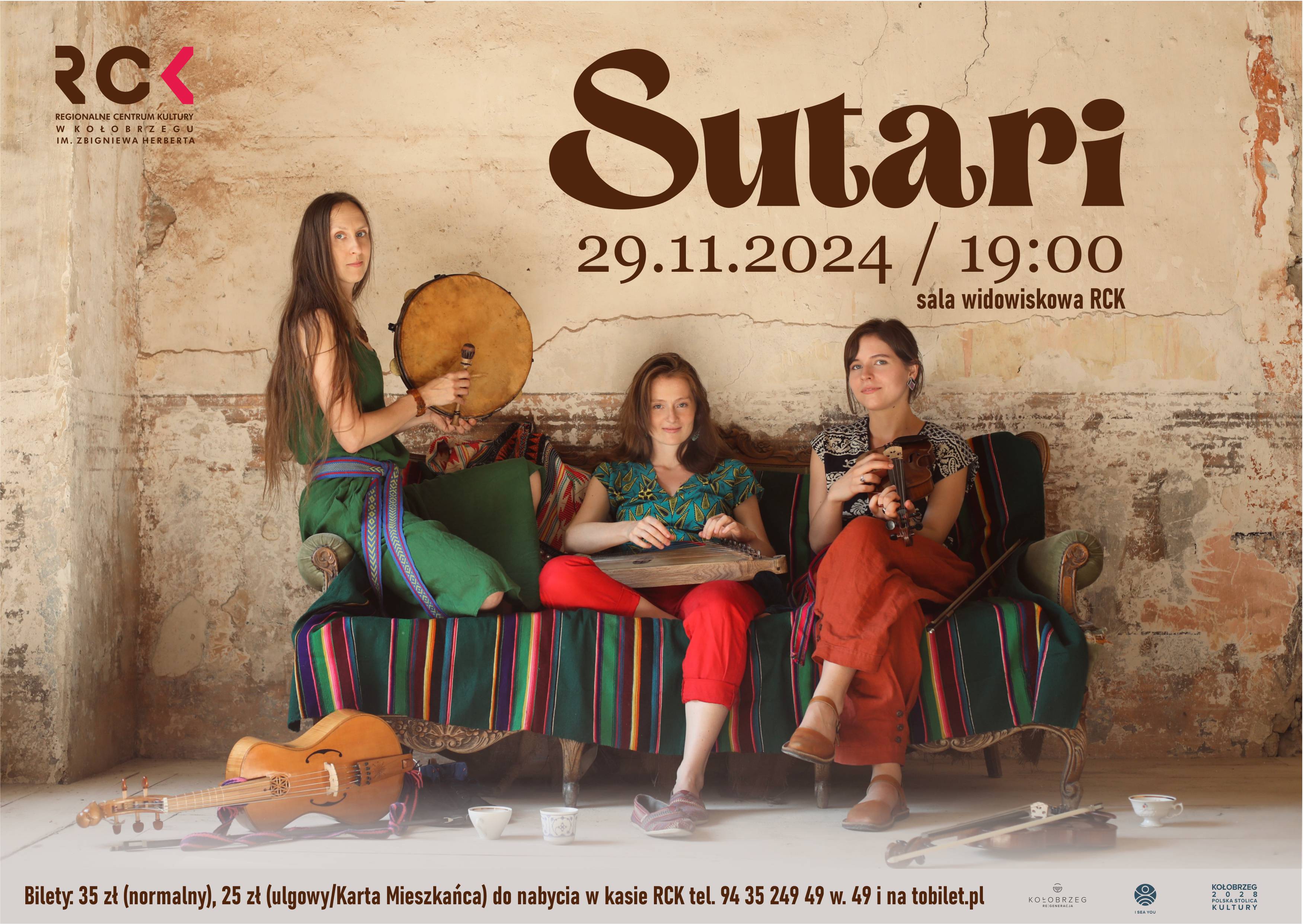Trio SUTARI to siła trzech kobiecych głosów splatających się w unikatowym, muzycznym wielogłosie. Ich muzyka to pełna transowych, polifonicznych kompozycji fuzja tradycji ze współczesnością, splatająca się wokół tematów natury, wolności, kobiecości i siostrzeństwa. Debiut Sutari zapoczątkował nową jakość na polskiej scenie folkowej. Zespół wykreował charakterystyczny styl interpretacji pieśni, wielogłosu i muzycznej opowieści. Artystki eksperymentują z różnymi technikami wokalnymi, tworzą własne instrumenty oraz badają potencjał muzyczny przedmiotów codziennego użytku. Aranżują tradycyjne polskie pieśni, a także komponują własne utwory, oparte na różnych kobiecych tradycjach muzycznych.